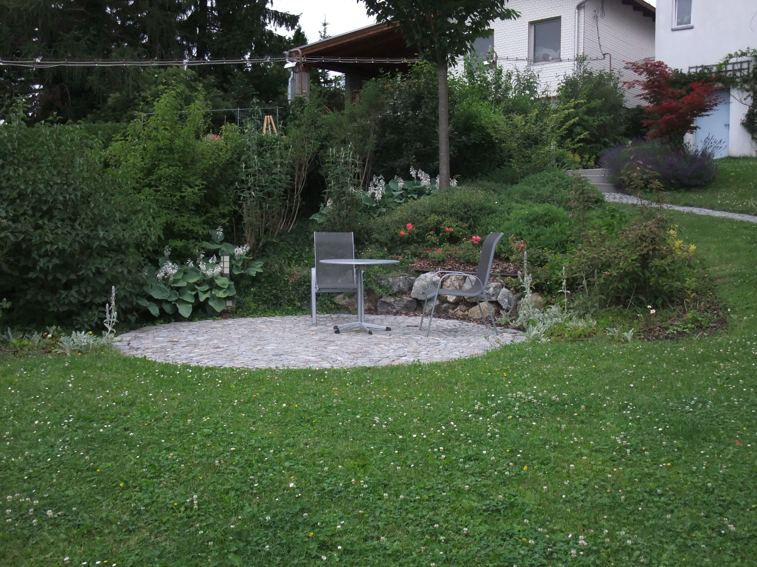 Das steil ansteigende Grundstück wurde durch gezielte Geländemodellierung in verschiedene Ebenen gegliedert und dadurch deutlich besser nutzbar gemacht.